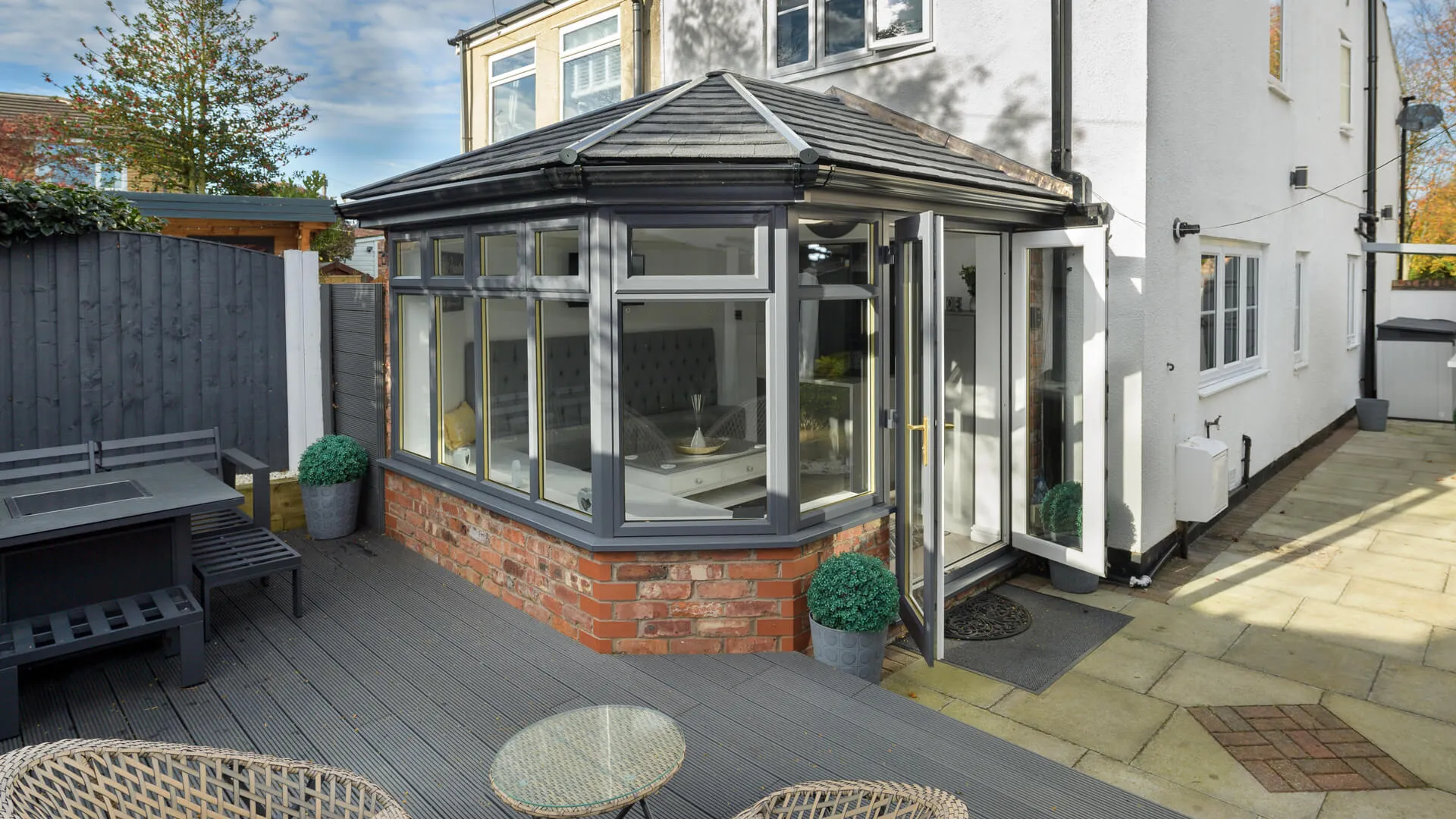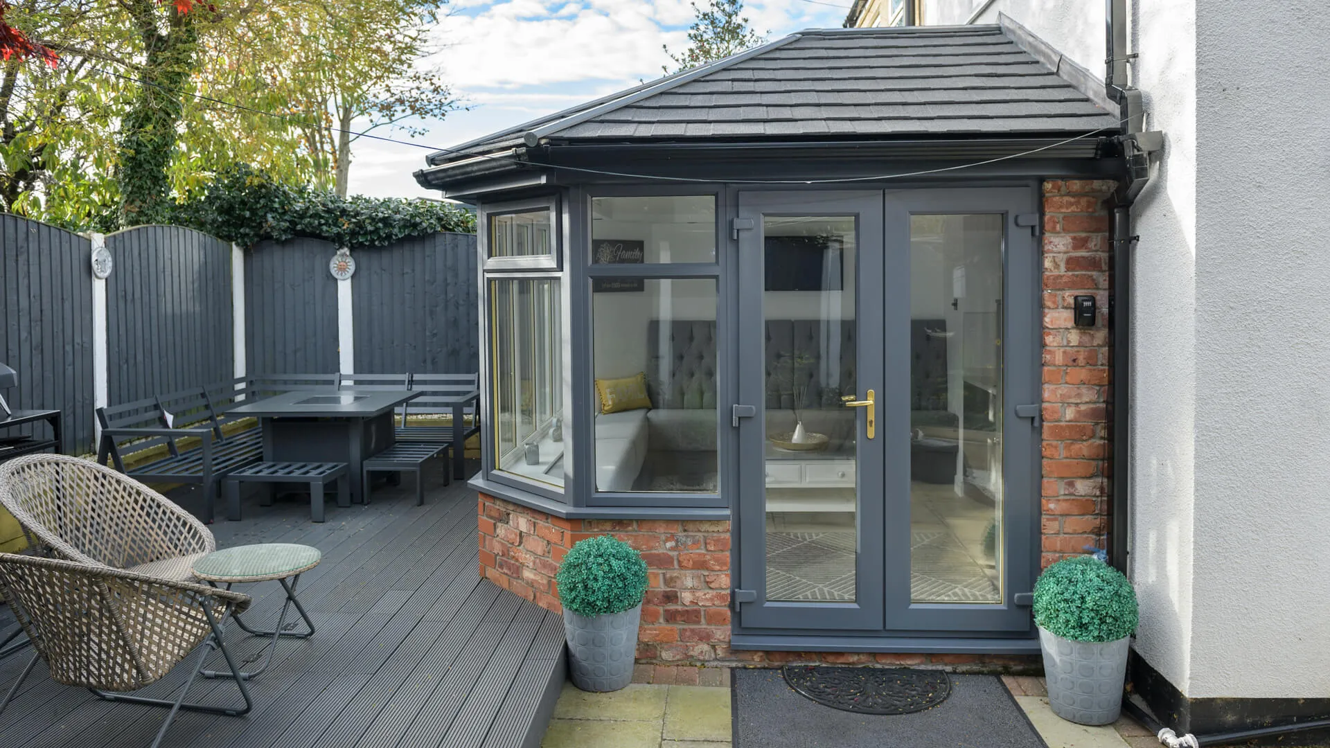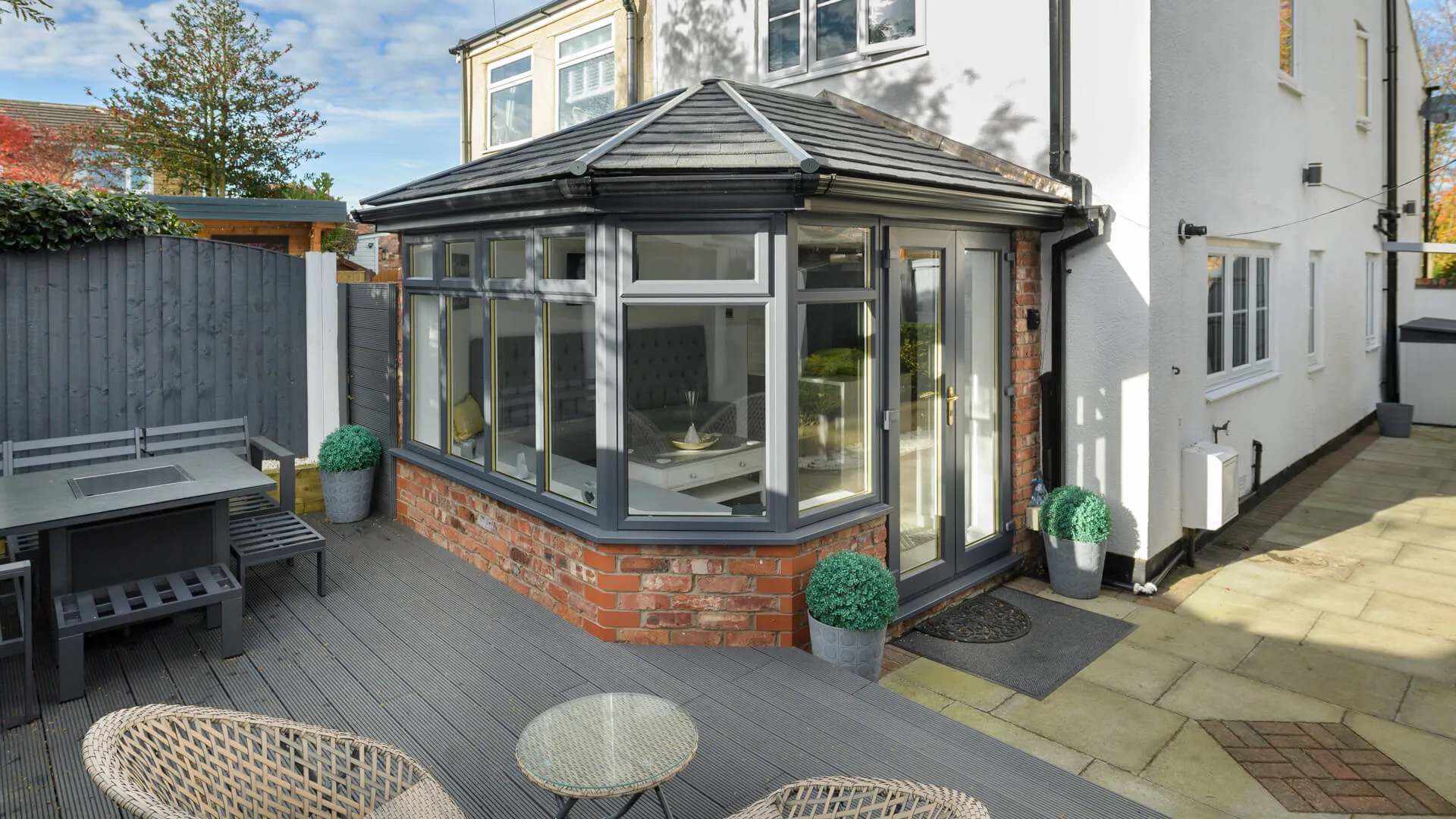 Our grey finish will coordinate with just about any house type, contemporary or classic, and match the tiled roof for thermal efficiency, doing an excellent job of preserving heat inside the revived conservatory.