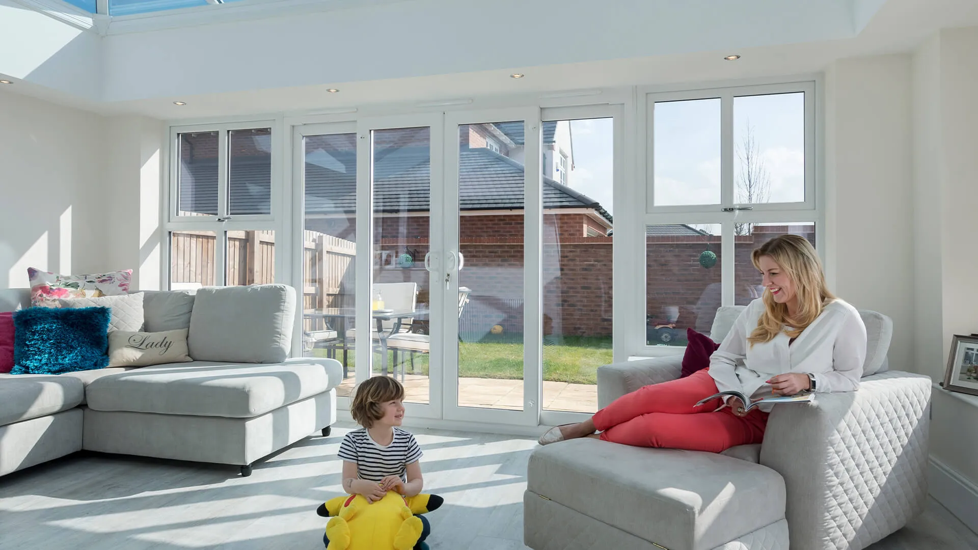 Exit your home for the outdoors in the most glamorous fashion, seamlessly crossing the threshold that splits the two through a panoramic patio door. The patio sliders run on a stainless steel track and have easy glide rollers, removing the need for any great effort to be exerted each time you fancy opening and closing the door. Sometimes it’s nice to just gaze out through the expansive glass panels as they offer a near undisturbed view, which makes those rainy days stuck indoors all the more bearable.